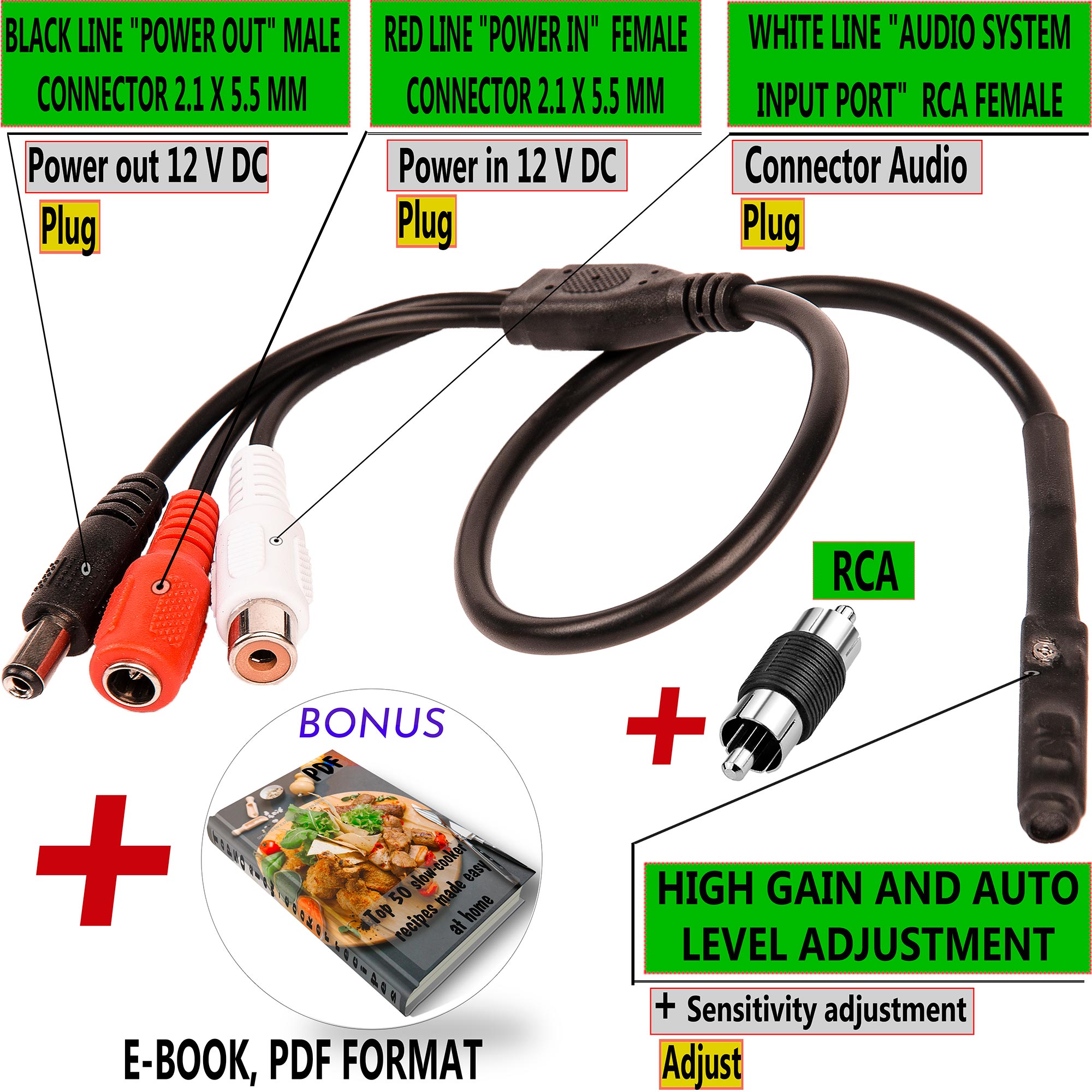 SURVEILLANCE MICROPHONE HAS High gain and auto level adjustment + sensitivity adjustment. Qualitative elements and the modern design of the microphone make it the leader in the US market.