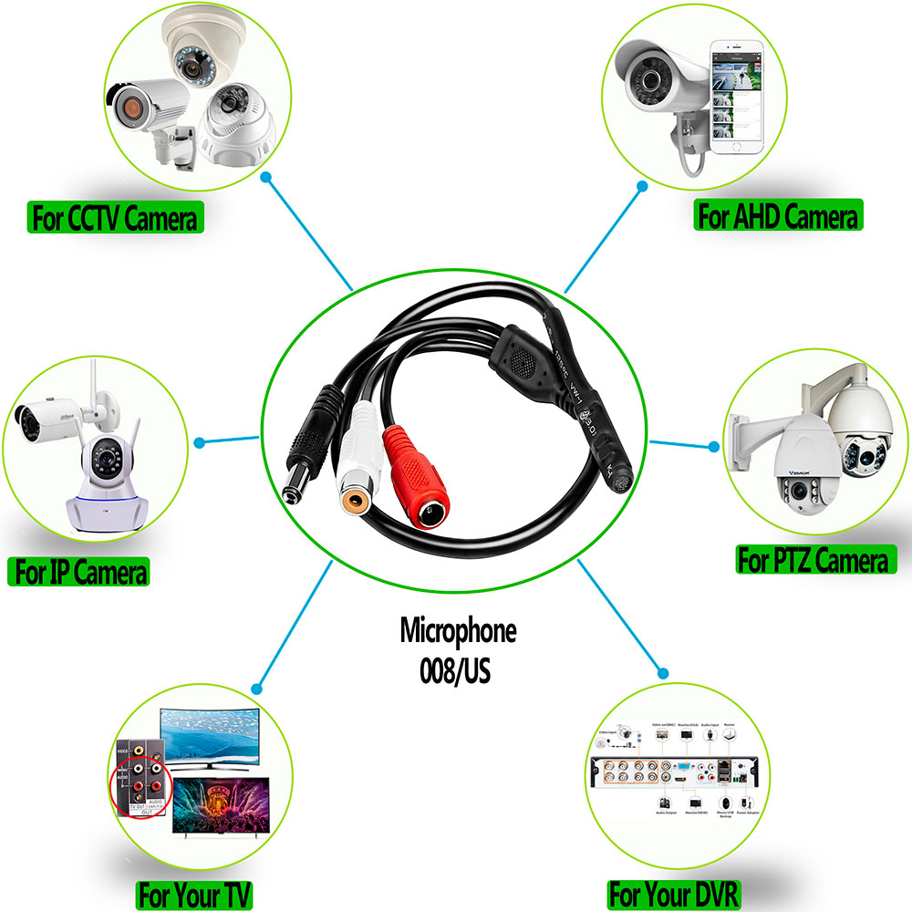 AUDIO MICROPHONE HAS Qualitative Preamplifier used to increase a microphone's low output voltage to a stronger usable level. High Sensitive Audio Sound Pick Up. CCTV DVR audio microphone is guaranteed to work more than 5,000 hours.